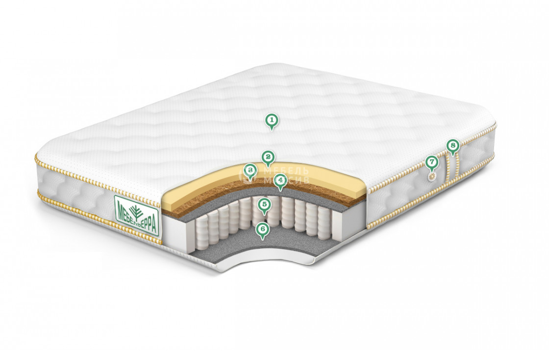 - Кокос 2 см ? Кокос - переплетенные волокна кокосового ореха, растительного происхождения. Исключительные свойства кокоса в прочности, упругости и гигиеничности. Материал придает жесткости матрасу. Обладает отличной вентилируемостью, устойчив к любой влажности и перепадам температуры, гипоаллергенный и долговечный.